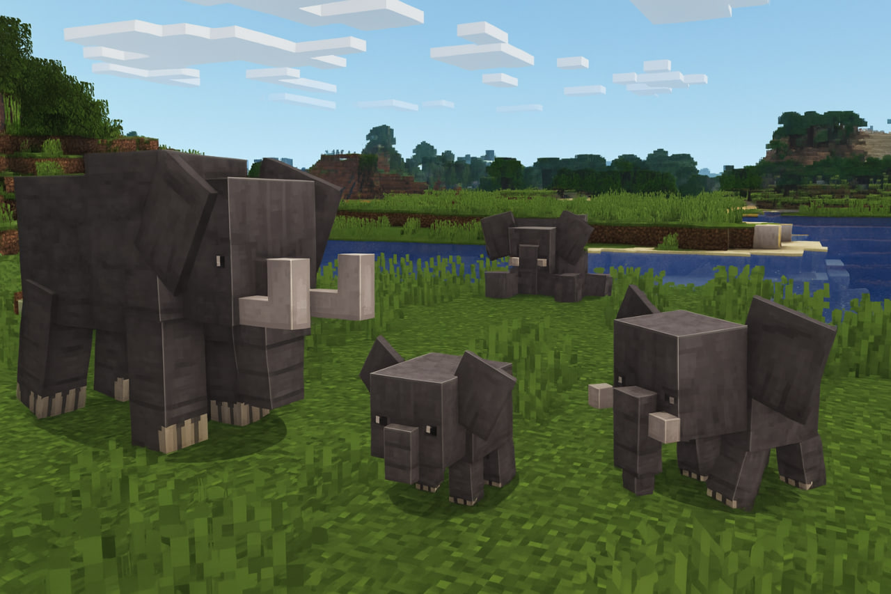 Добавь на сервер величественных, проработанных и атмосферных слонов — идеальных обитателей саванн, джунглей и крупных природных зон!