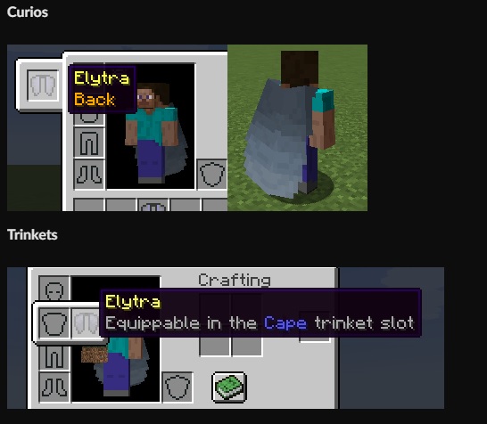 | Elytra Slot | броня + крылья одновременно |