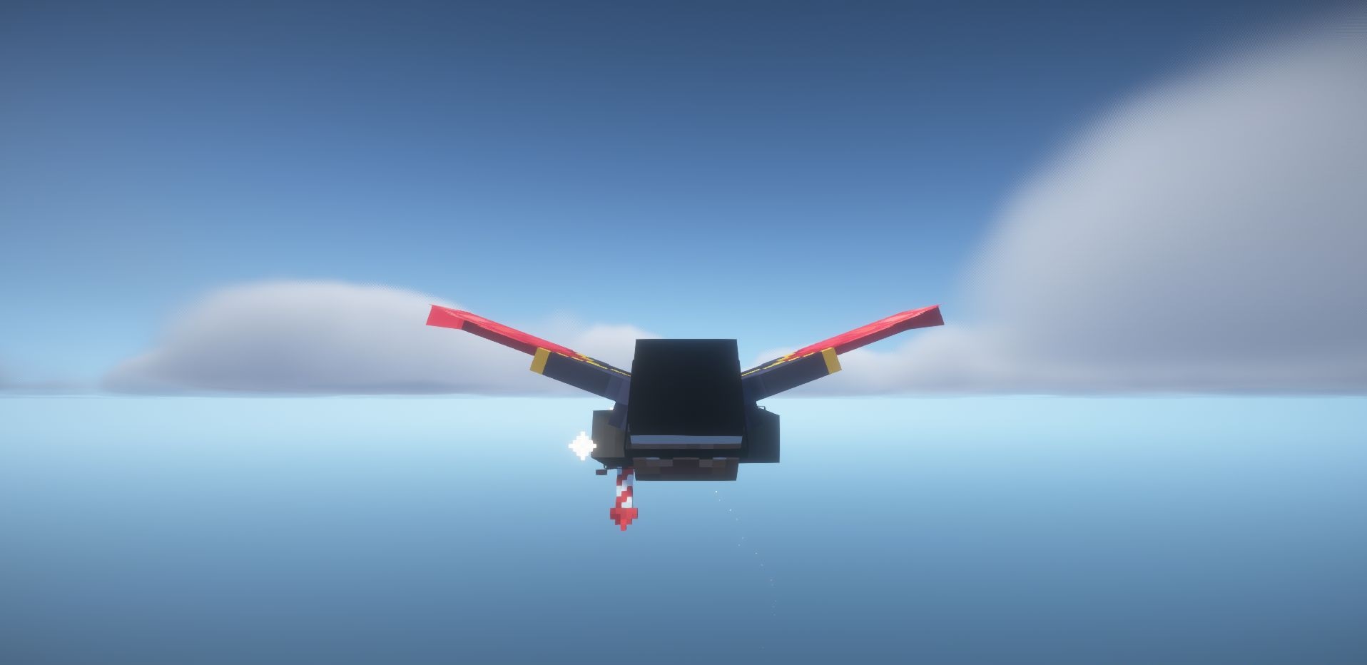 Elytra один из самых мощных предметов поздней стадии игры. Они позволяют игроку планировать и летать по миру, используя фейерверки для ускорения. Однако базовая механика полёта довольно ограничена: нет полноценной аэродинамики, кастомизации и альтернативных способов получения крыльев.