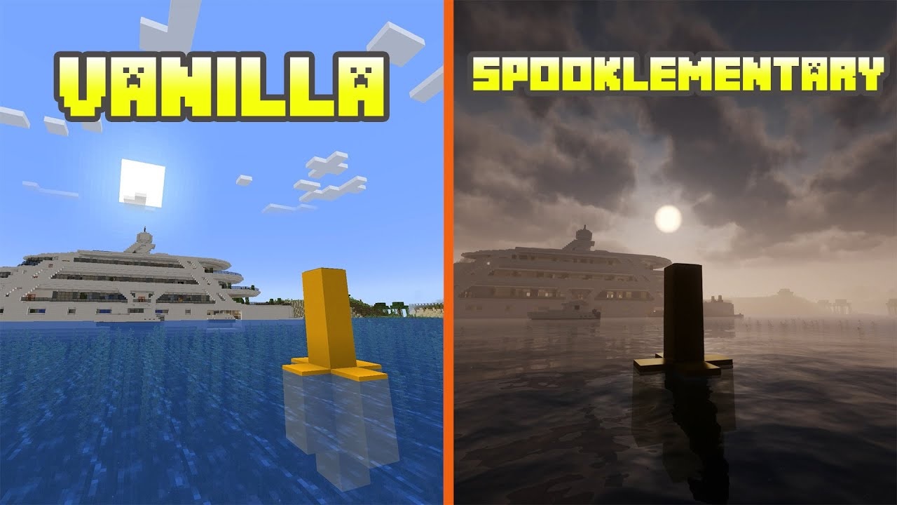 Spooklementary — один из самых визуально уникальных шейдеров, доступных игрокам. Он стремится полностью изменить атмосферу игры, десатурируя большинство цветов и делая освещение значительно более мрачным. Кроме того, в темноте будут случайным образом появляться глаза, а туман будет значительно плотнее обычного, делая Minecraft по-настоящему страшным с этим шейдером.