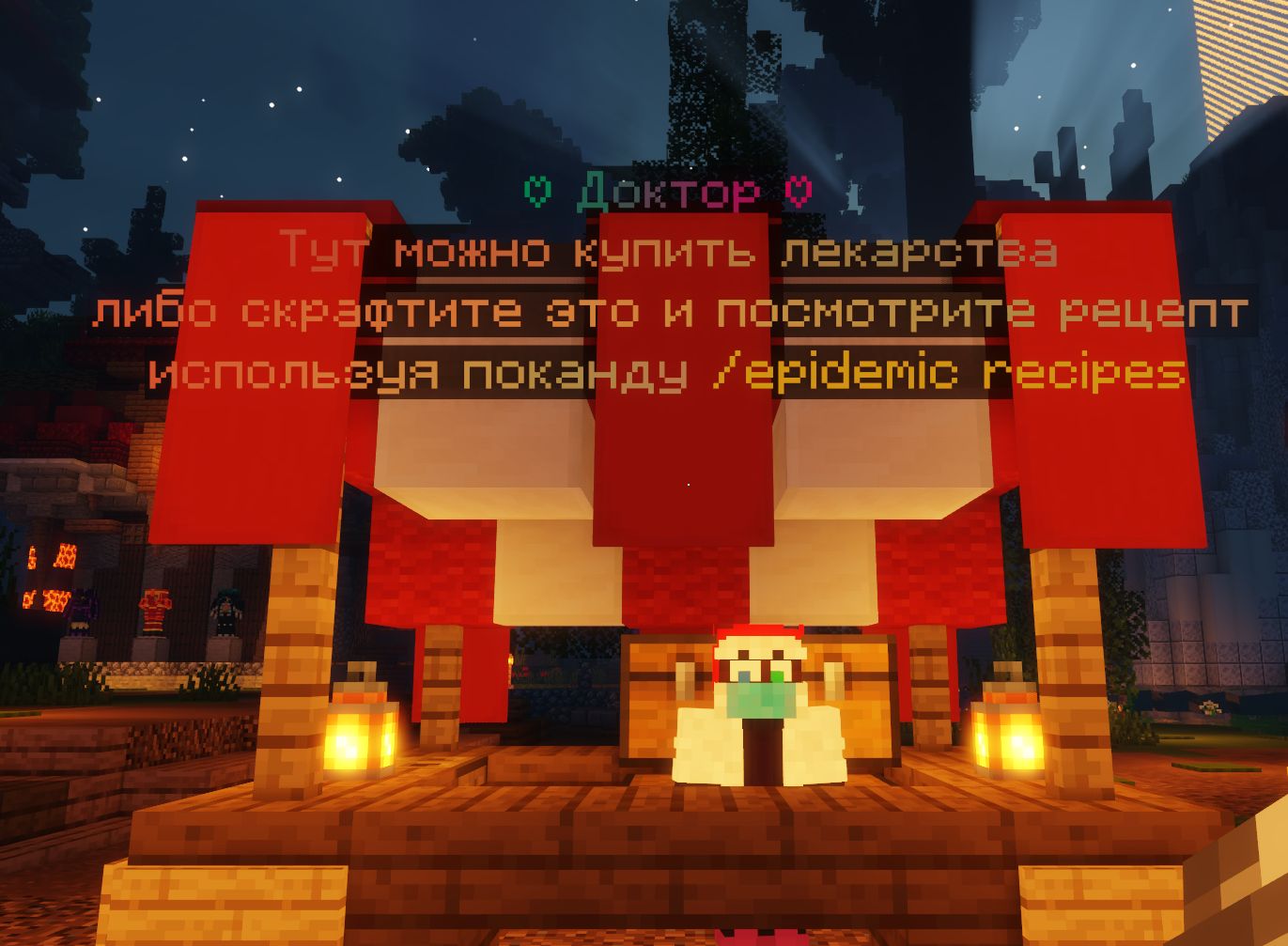 Либо можете скрафтить себе лекарство, а рецепт можно найти введя команду /epi recipes /epirecipes или /epidemic recipec